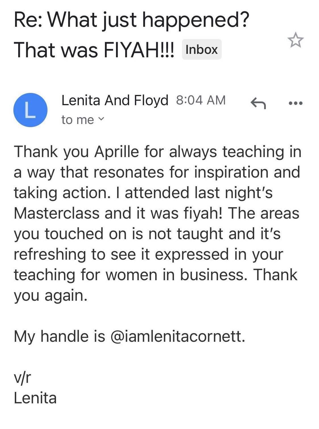 As a master community builder, content creator and launch strategist to women entrepreneurs, she helps women operate within their divine feminine power. Her super power is transforming the business and personal lives of the women connected to her. Aprille uses her unique ability to galvanize online communities through attraction content marketing to empower women in business through her duplicable coaching model, the best of both worlds.
